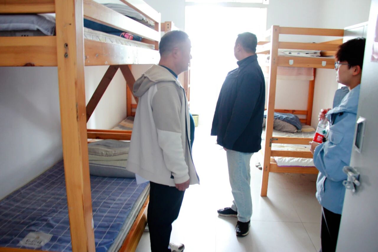 家长代表在班主任的陪同下参观学生宿舍,查看内务整理,细致询问住宿管理细节;走进学校食堂,实地了解饭菜种类,食材采购、清洗消毒等流程。走近体育健身室,了解学生课后体育活动时段的安排与安全保障措施。