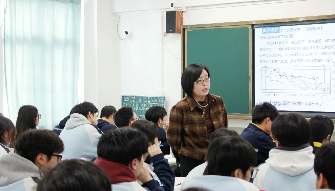 地理组贾萍老师以“水深火热”的雅加达气候分析为主线,通过对其气候特征的描述、气温及降水成因的分析,结合高考真题,总结和归纳解题思路和答题方法,规范学生答题术语,最后落脚到亚运会举办日期与气候的关联,落脚到人地协调观这一核心素养上。课堂充分凸显了学生的主体地位,以引导学生的分析回答为主要方式,让知识和方法在讨论和互动中生成,结合实际情境解决实际问题,从学科核心素养出发,培养学生地理学习能力。