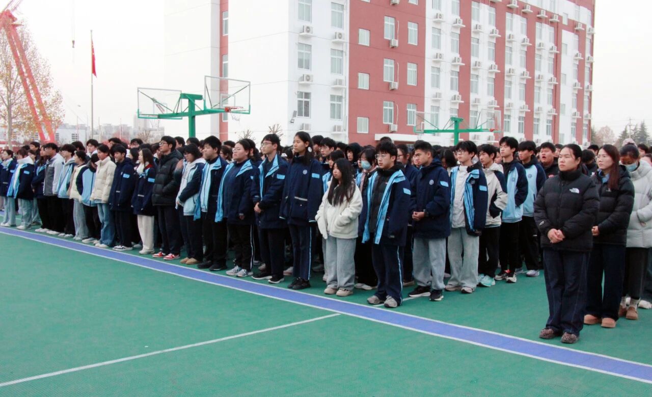 清晨,天色破晓,高二年级师生早已赶到操场,怀着崇敬的心情等待着升旗仪式的开始。本次活动以“安全守护、书香成长、榜样激励”为主题,在庄重的仪式感中传递责任与力量,为冬日校园注入奋进暖流。