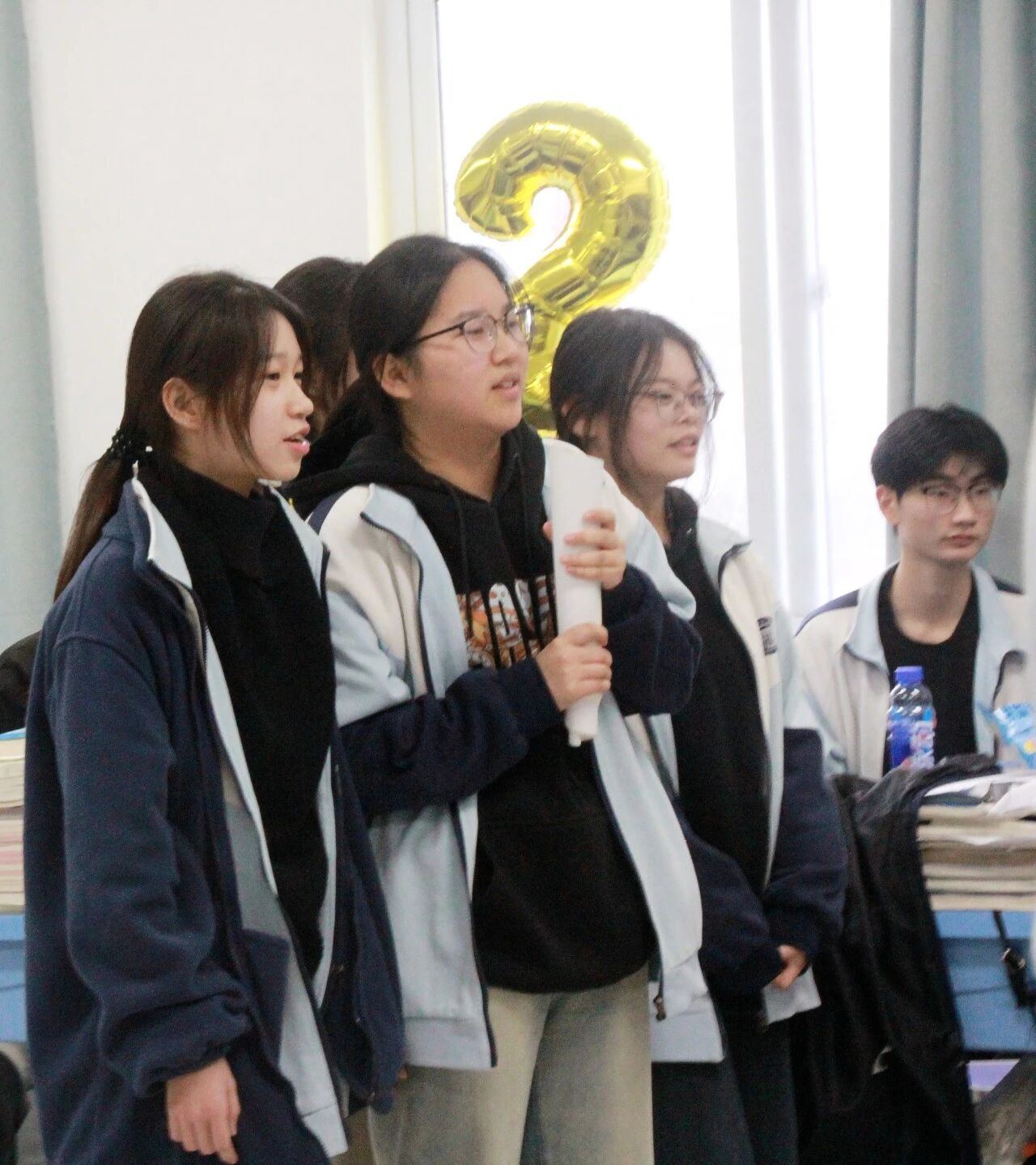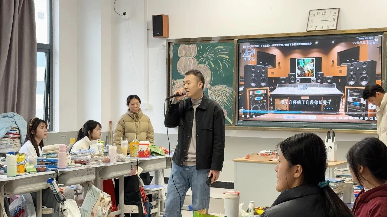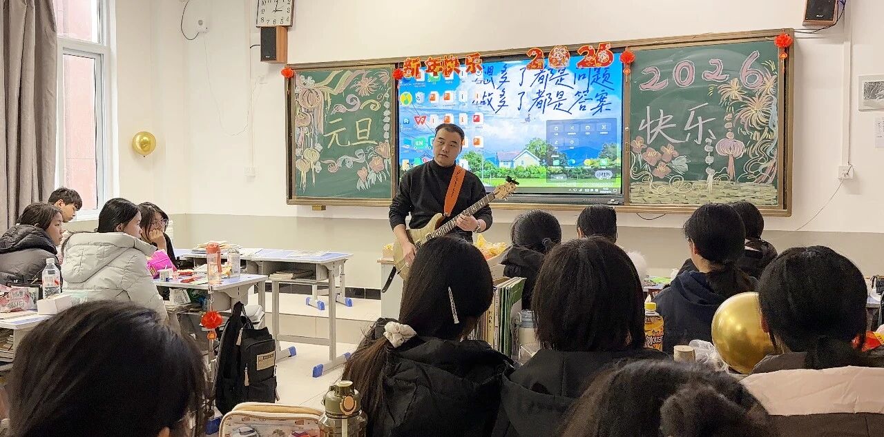 各班节目精彩纷呈,既有深情婉转的流行金曲,也有激昂奋进的励志旋律;舞蹈表演活力四射,同学们踏着欢快节拍舒展身姿,将少年意气展现得淋漓尽致;趣味游戏环节更是热闹非凡,“你表演我猜”“欢乐抓小马”等互动游戏让师生们踊跃参与,掌声、笑声、欢呼声此起彼伏,瞬间点燃现场气氛。尤为亮眼的是,音乐艺术老师们走进各班课堂,带来了专业的乐器表演,悠扬的琴声、婉转的笛音与同学们的欢呼声交织,让班级联欢更添艺术韵味,尽显“亦师亦友”的融洽氛围。