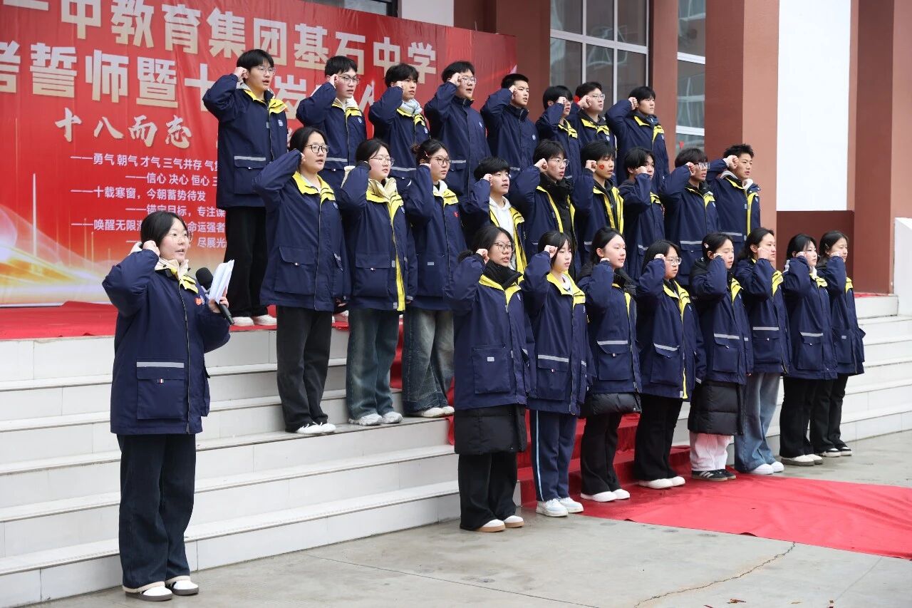 在全体师生的见证下,袁佳欣同学带领全体高三学子举起右拳,庄严宣誓:“十八而志,重任在肩;百日鏖战,决胜高考……”铿锵有力的誓言回荡在校园上空,彰显着基石学子决战高考的决心与信心,许下了不负青春、不负韶华的庄严承诺。