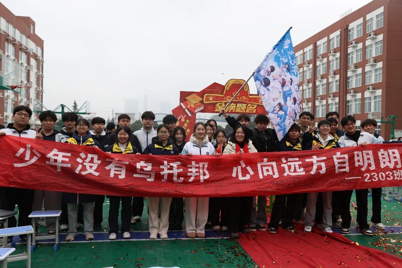 激昂的旋律响彻校园,各班学生高举班旗,迈着铿锵有力的步伐依次入场。老师们分列两侧,以最热烈的掌声迎接这群逐梦勇士。“我不懂什么年少轻狂,只知道胜者为王”“行则将至,做则必成”……一句句霸气十足、青春洋溢的班级誓言,尽显高三学子无畏拼搏的昂扬姿态,现场掌声雷动,激情飞扬。