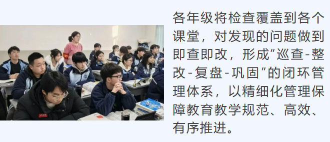 校领导带队值班全程值守,德育处、教务处联动检查,全天候覆盖校园学习、生活、作息各场景,确保校园安全管理无死角、教育教学无遗漏、服务保障无空档。