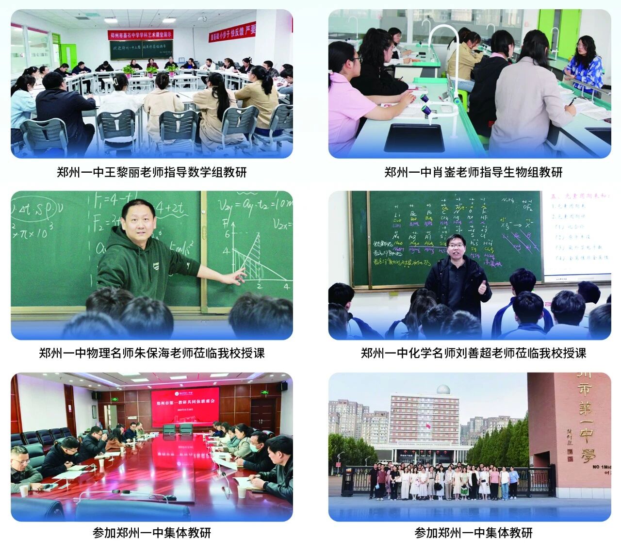 为了快速培养高水平教师队伍,精准推进教育教学质量提升,我校特邀郑州一中各学科专家走近课堂听课评课,面对面为学生答疑解惑,对教育教学进行全面指导、设计,对“备、讲、批、辅、考”各个教学常规环节开展高效教研,显著提升了教师的专业素养和教学能力,有效助推了学校教育教学质量稳步提升。