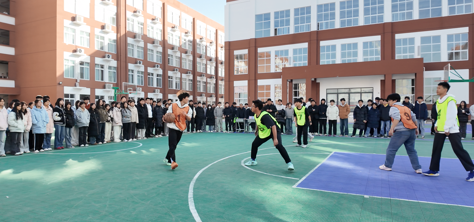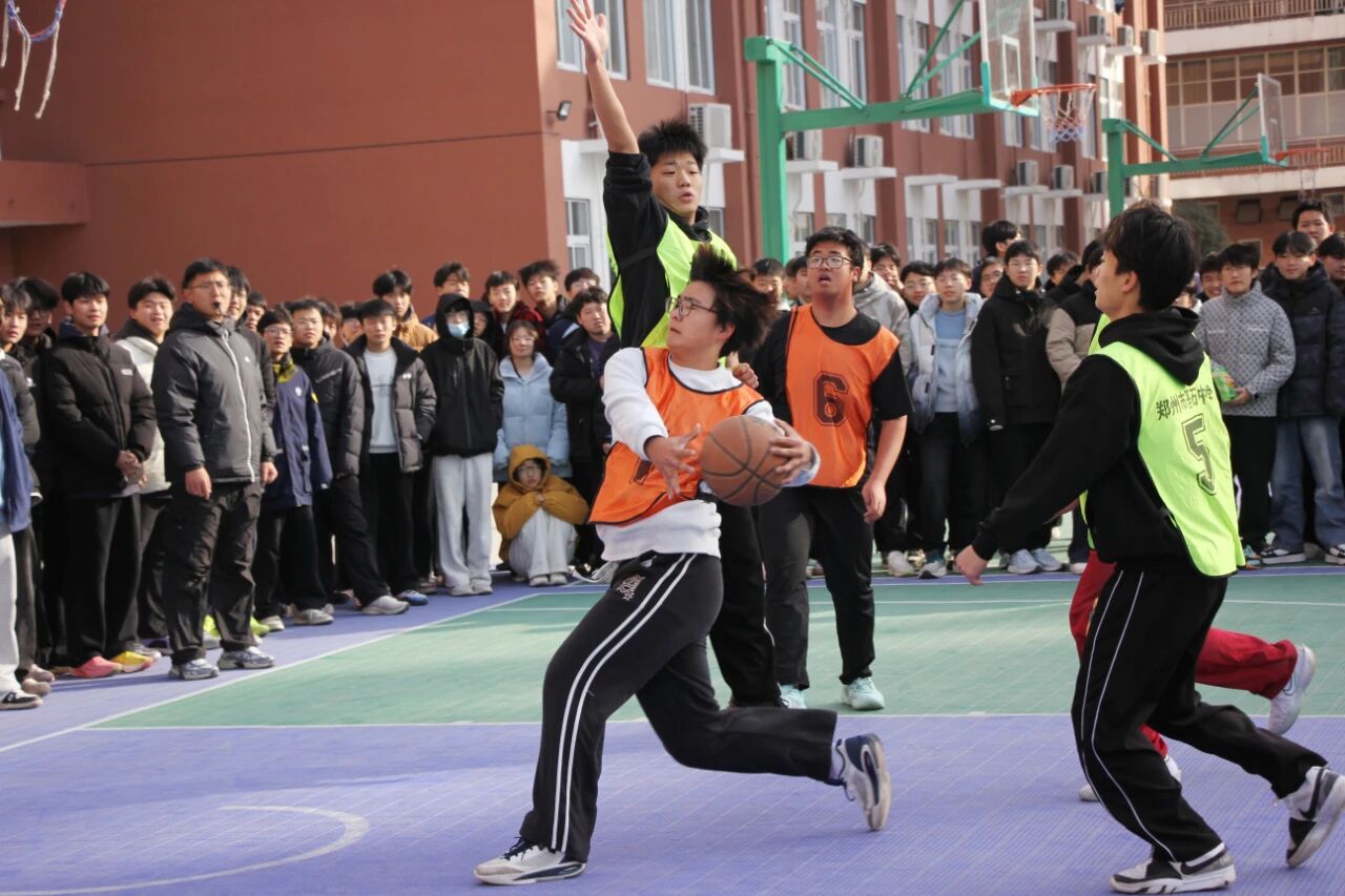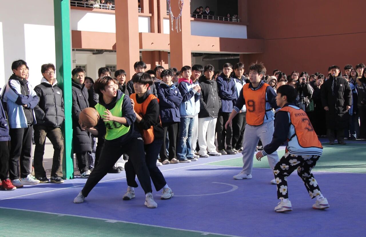 各班级代表队斗志昂扬、默契配合。抢断、传球、起跳、投篮……一系列动作行云流水,引得场边观众阵阵欢呼与呐喊。队员们时而强势进攻撕开对手防线,时而严密防守筑牢己方阵地,每一次攻防转换都扣人心弦。