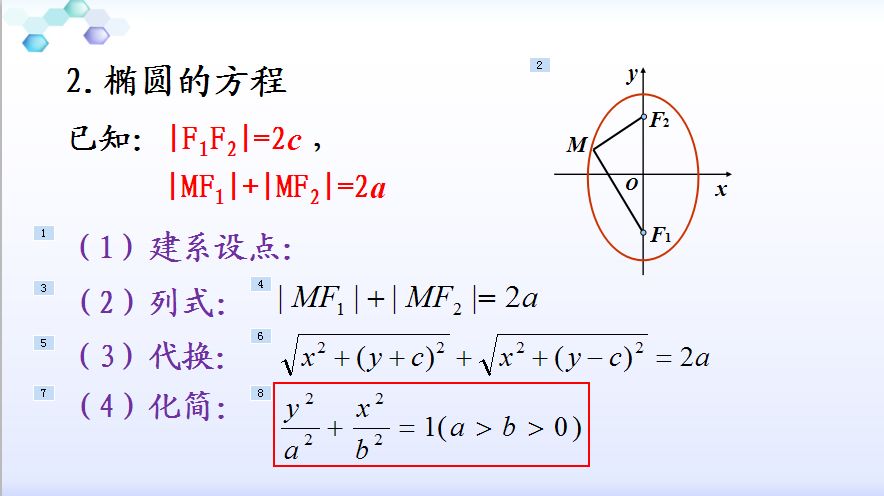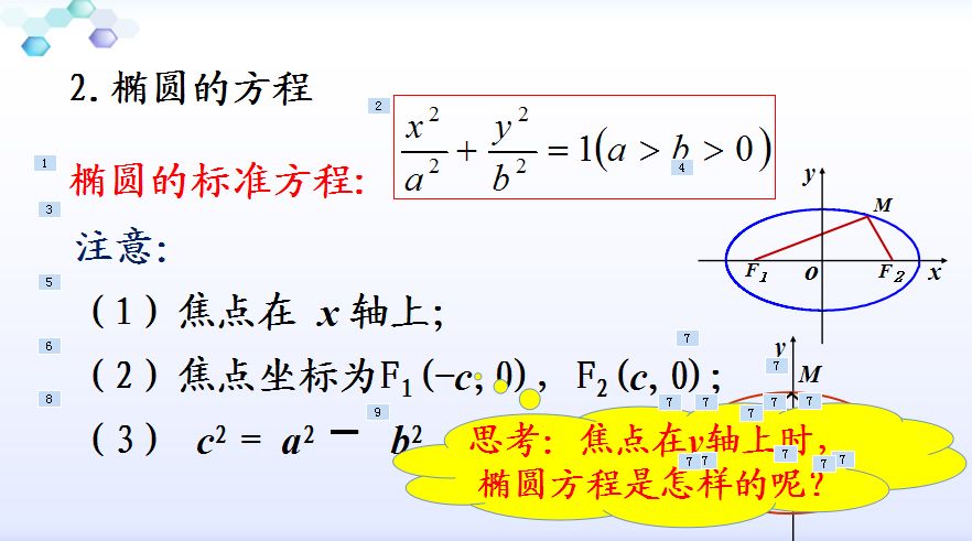 (3)掌握椭圆的定义,标准方程及几何图形。