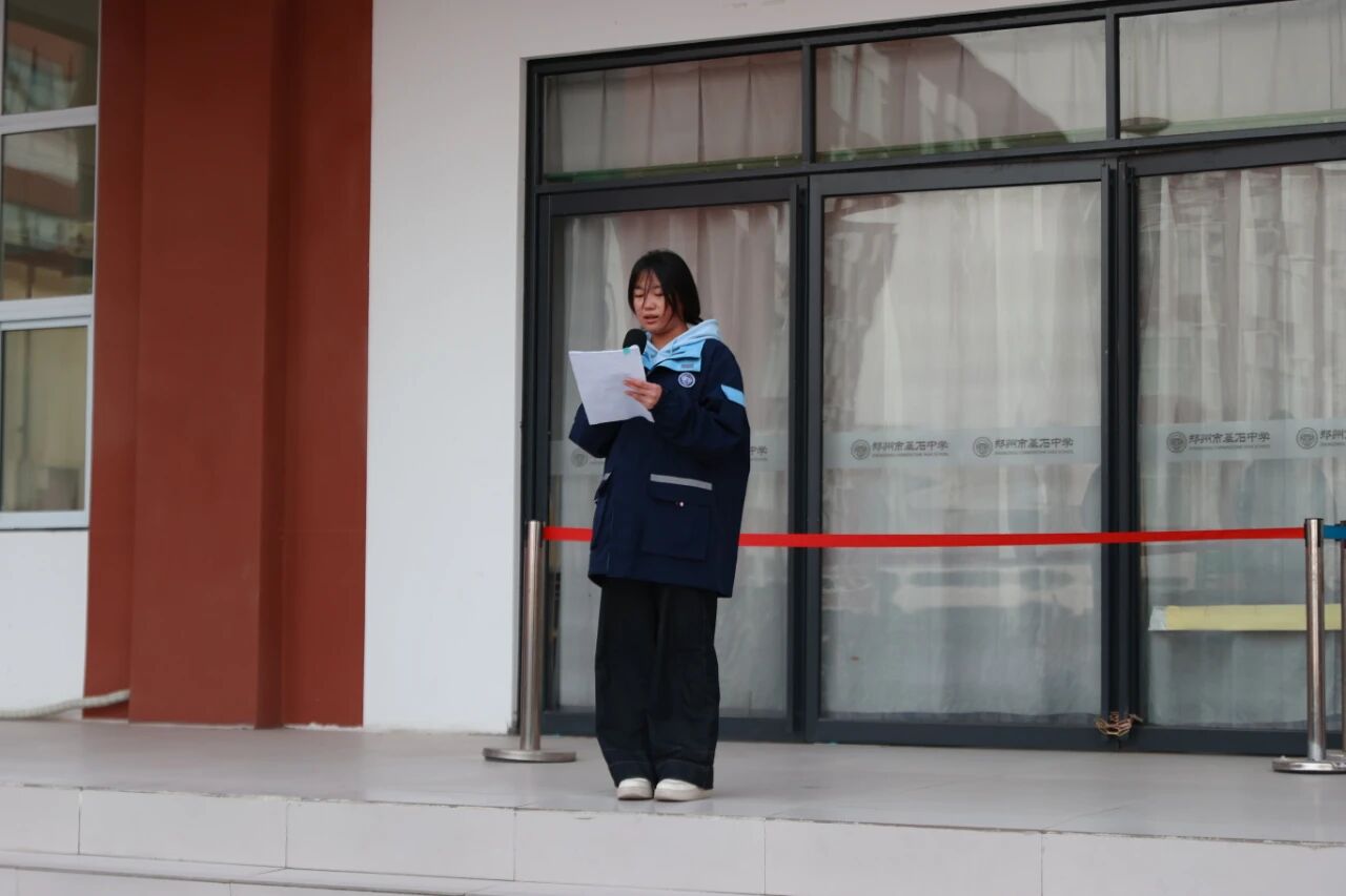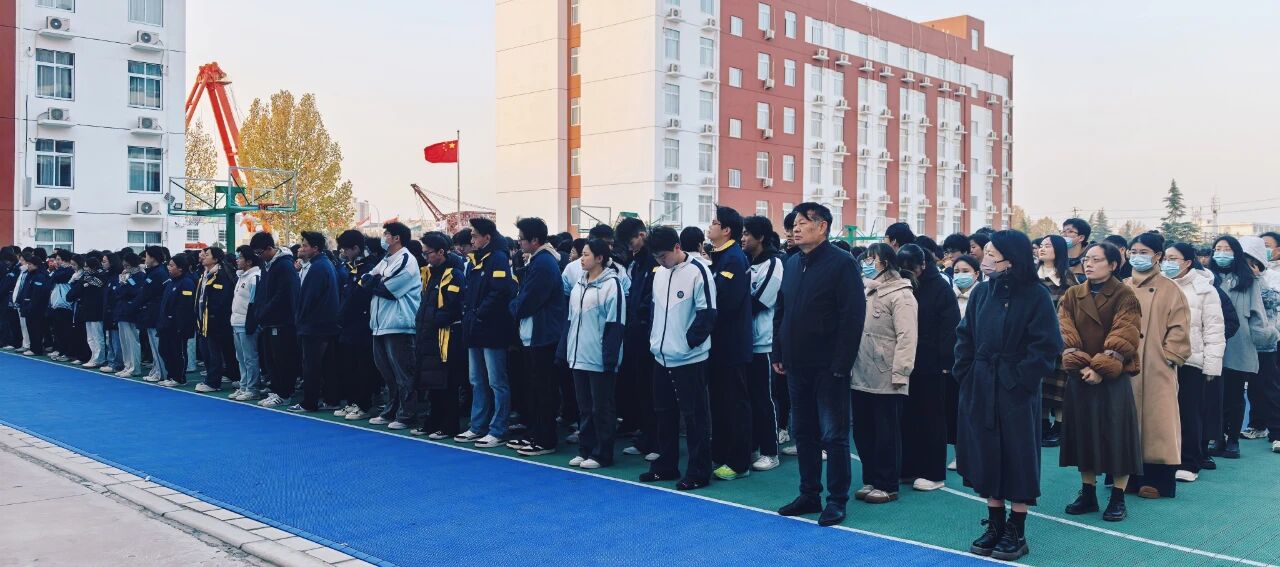 11 月 24 日清晨,晨曦微露,郑州市基石中学操场上已是整齐的队列。全体师生精神抖擞,共同参加主题升旗仪式,活动绕校园安全、学业表彰、德育建设等内容开展。仪式由校学生会李子轩同学担任主持人。