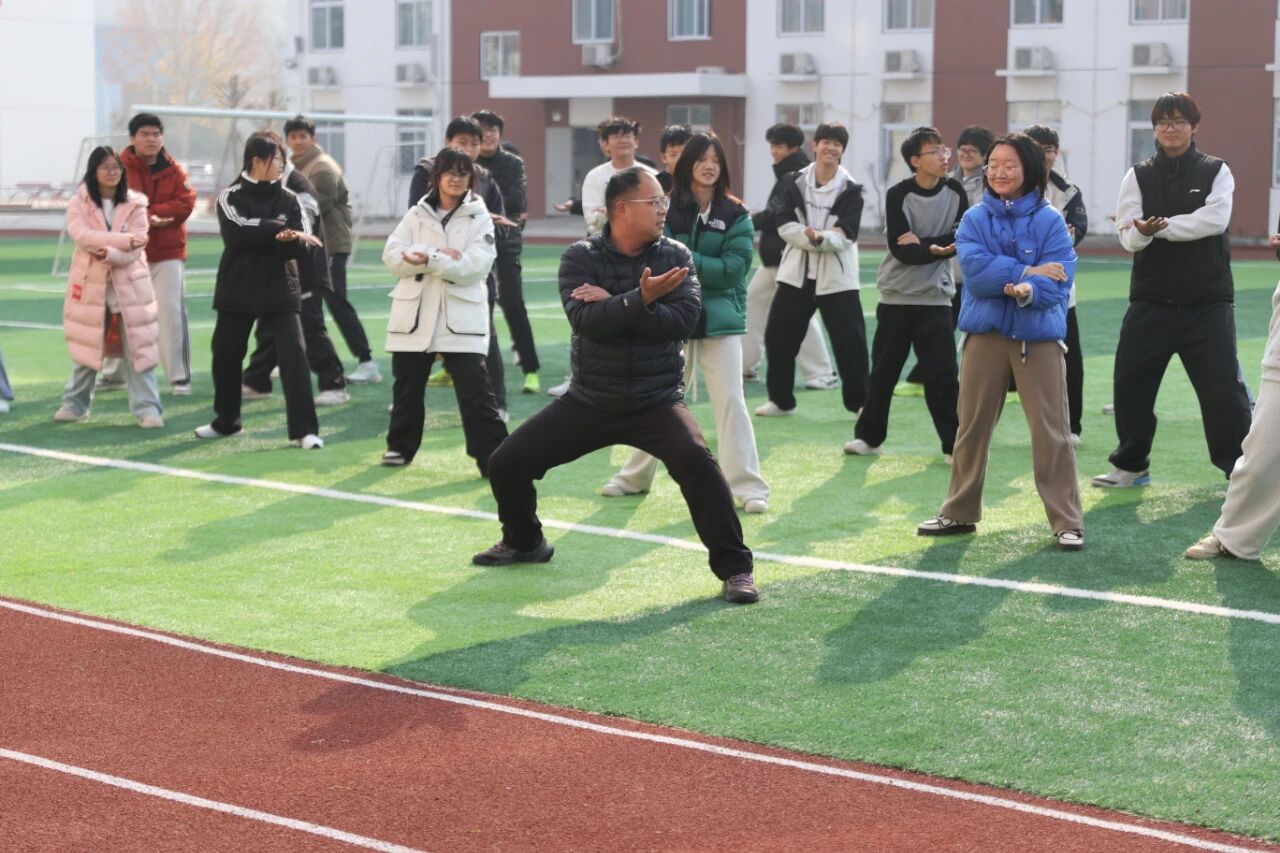 体育课上,李祥老师开展太极拳基础入门教学,细致讲解并示范太极站姿与步法,同学们练习云手、野马分鬃等经典招式,在反复练习中打磨动作细节,大家在一招一式中感受传统武术的独特魅力。