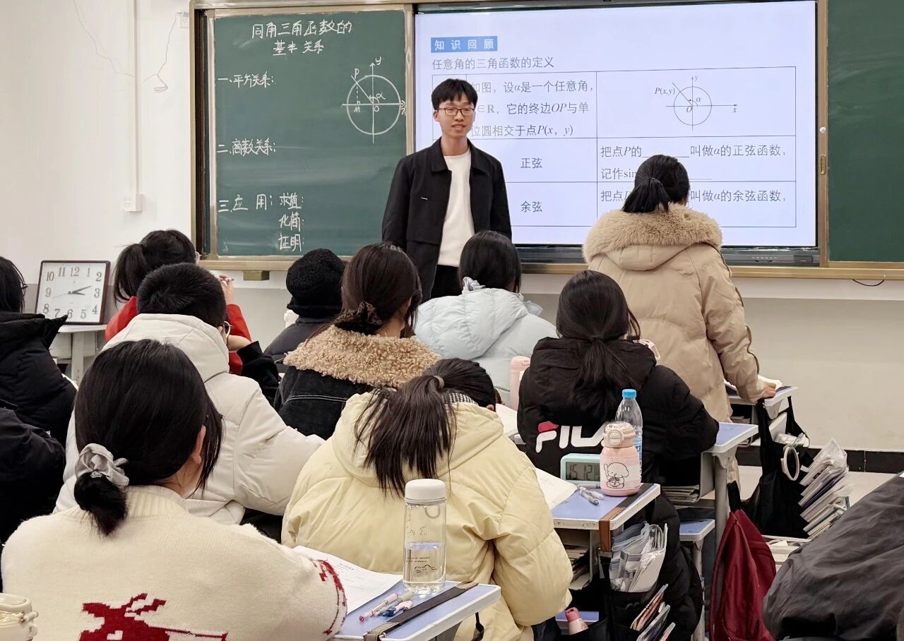 数学组田静静老师以体操运动员动作视频巧妙导入,课程打破初中0°~360°静态角的认知局限,以动态旋转为核心展开教学,整个课堂数形结合贯彻始终,借助坐标系和单位圆模型辅助教学,实现了知识和能力双提升。