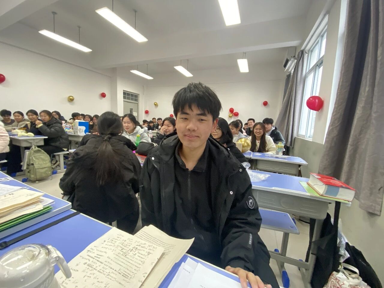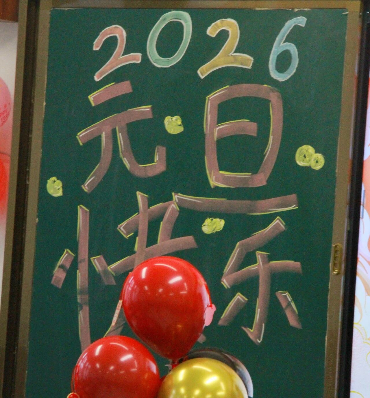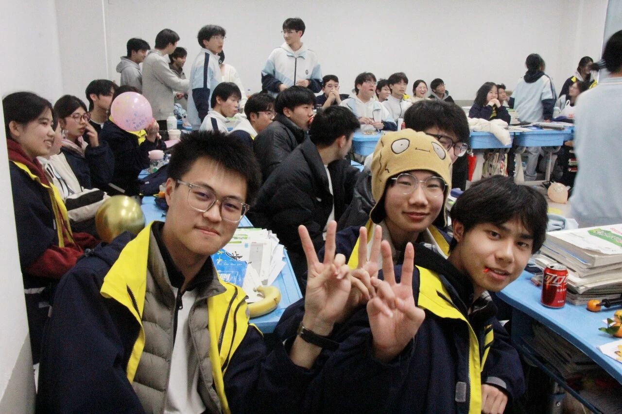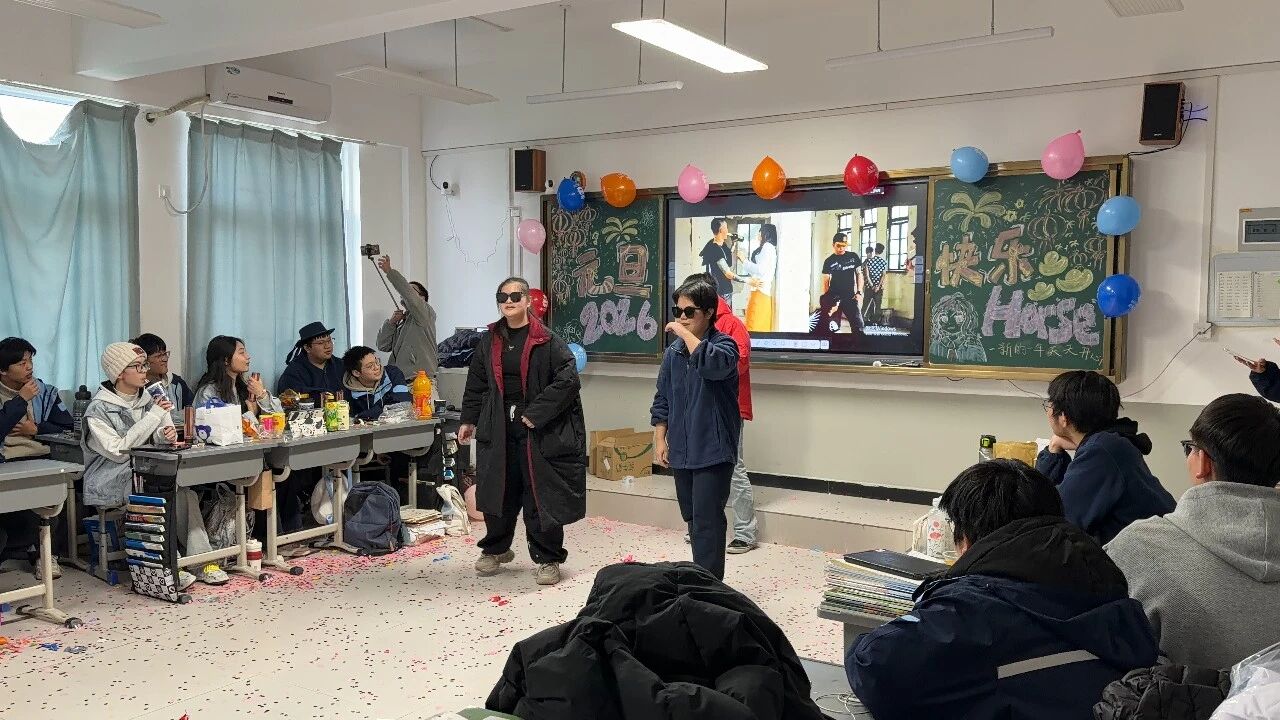 金声玉振辞旧岁,欢歌笑语迎新年。步入教室,浓浓的年味扑面而来,每间教室都化作创意满满的欢乐天地。同学们匠心巧思,将红灯笼、春联与寓意吉祥的中国结悬挂其间,黑板上,“龙马精神”“策马逐梦”等主题板报色彩鲜亮、字迹工整,既饱含对新年的期许,又彰显着青春的志向;五彩气球与缤纷彩带交织缠绕,水果零食整齐摆放,让教室成为充满温情与欢乐的海洋,处处洋溢着辞旧迎新的喜庆氛围。