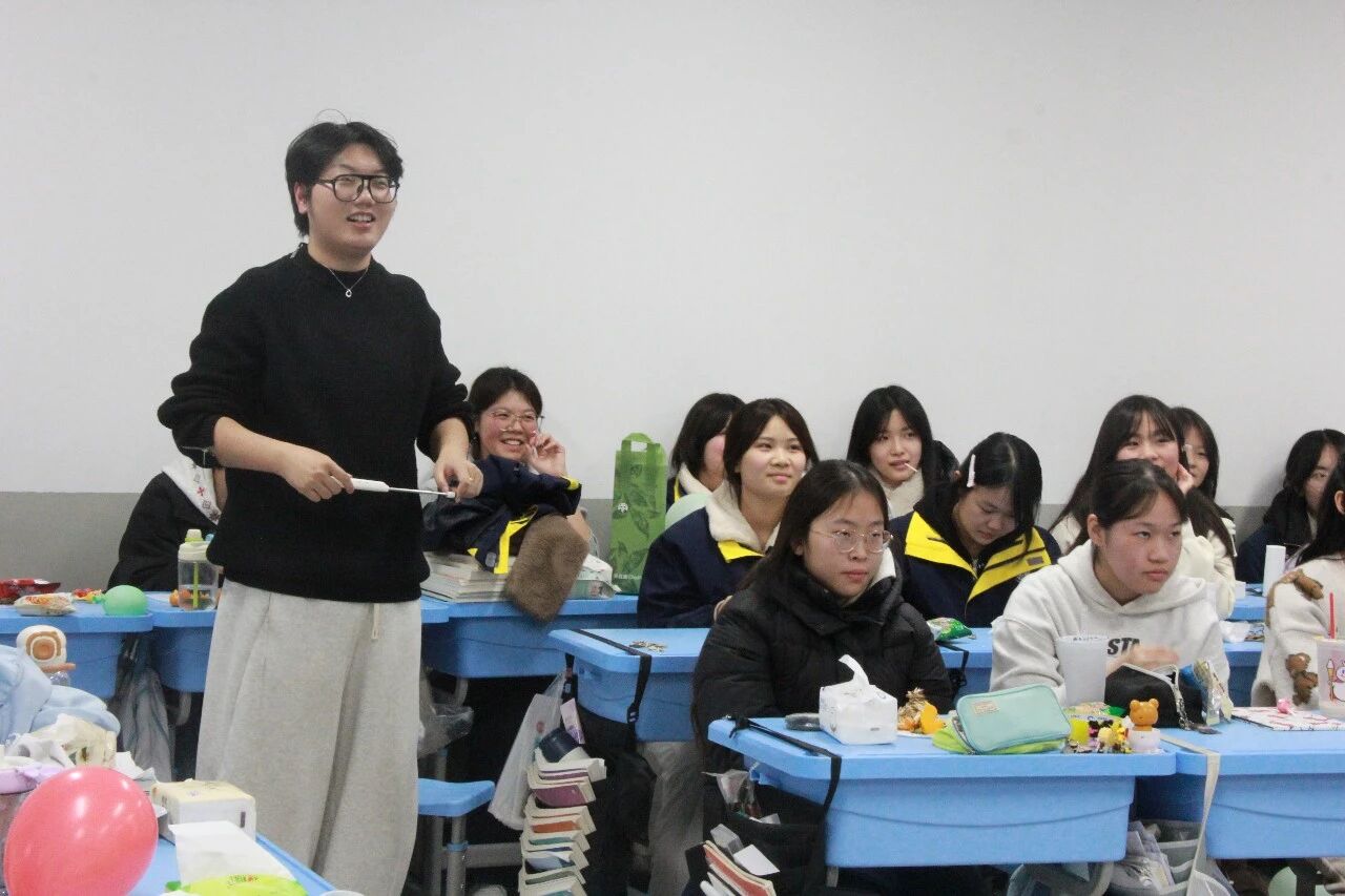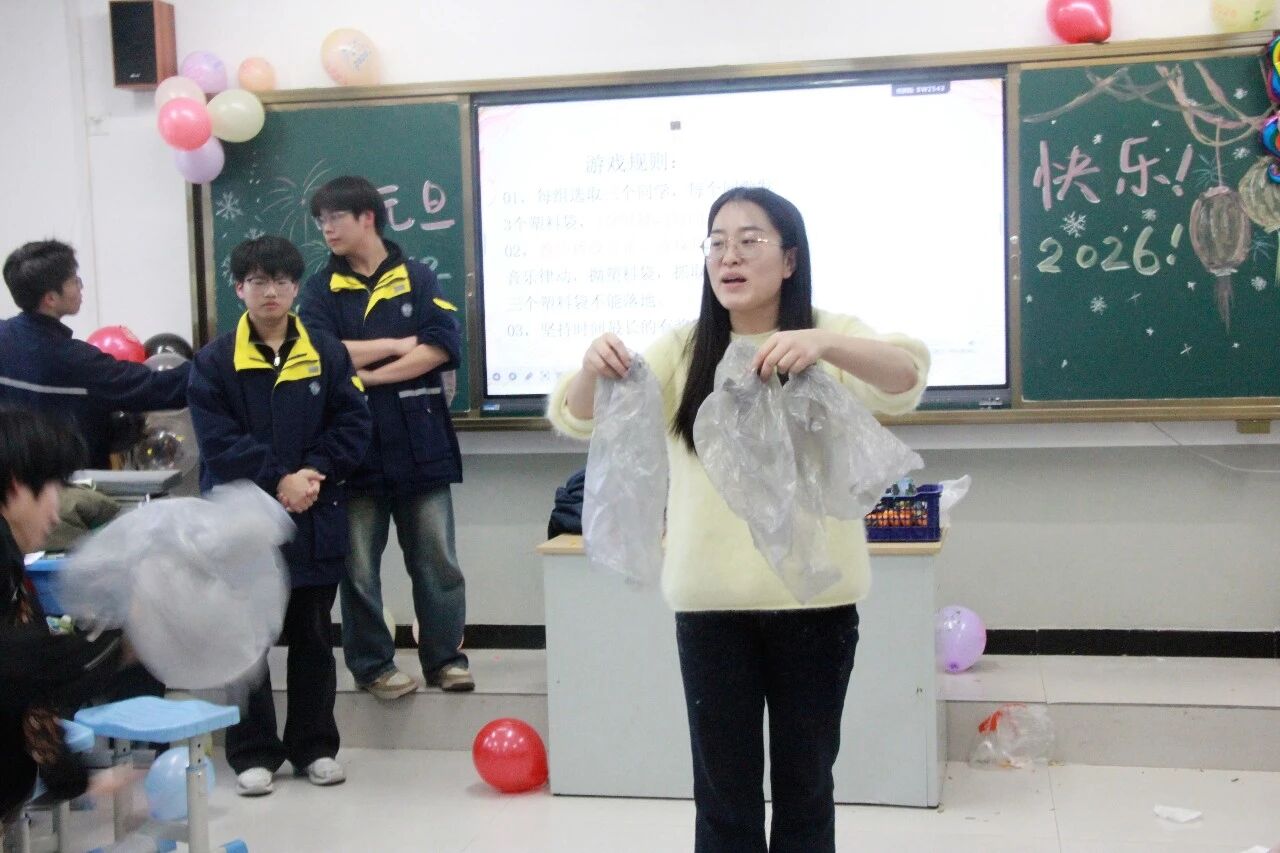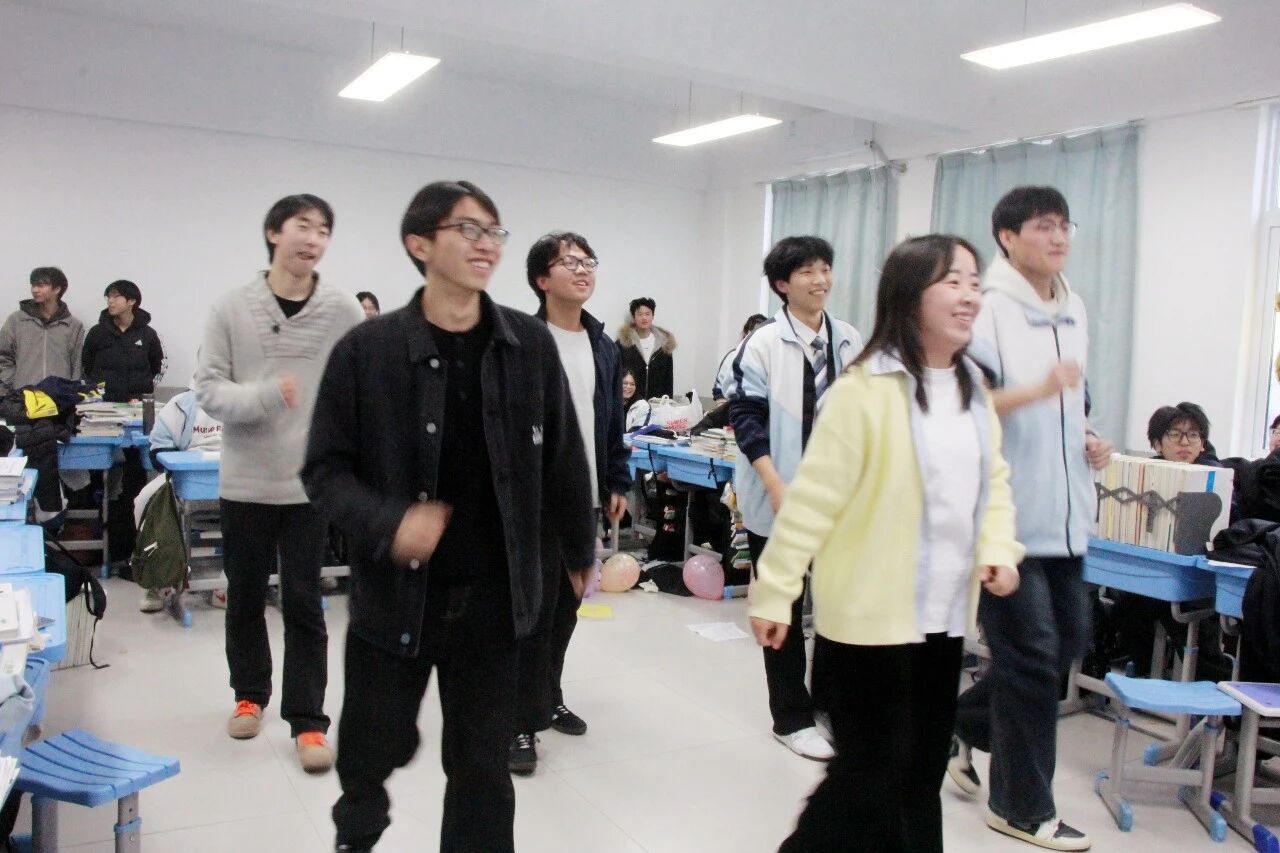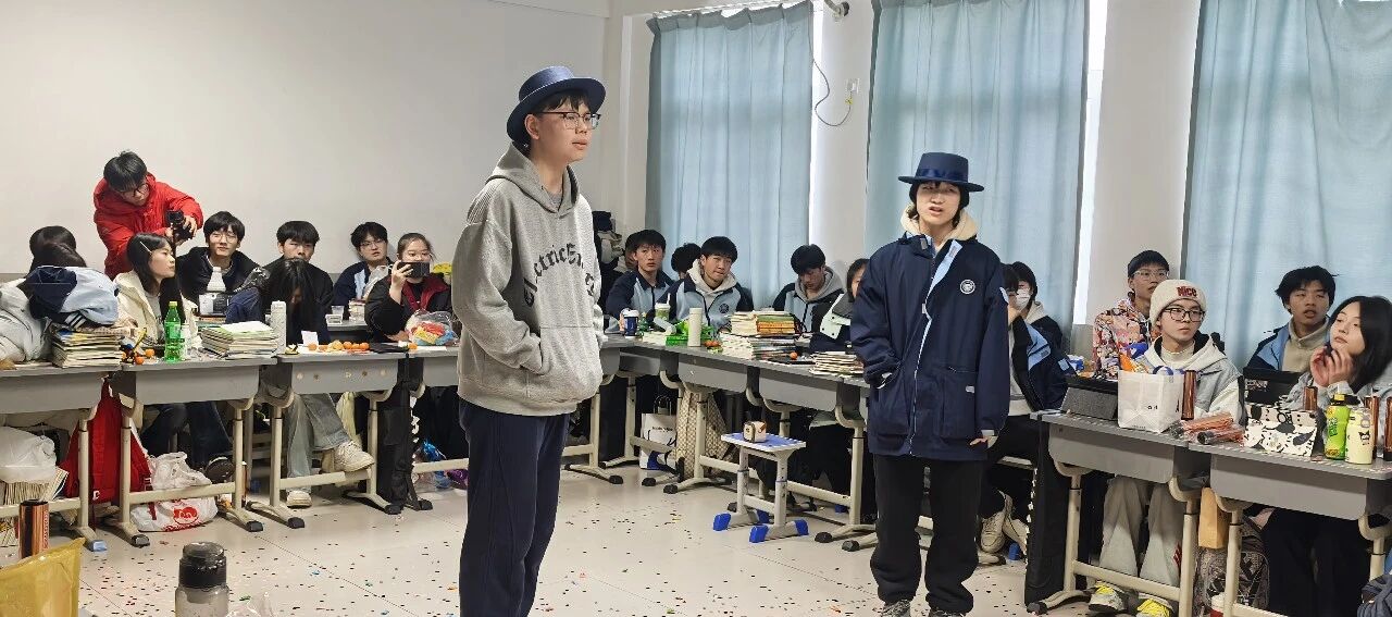 各班节目精彩纷呈,既有深情婉转的流行金曲,也有激昂奋进的励志旋律;舞蹈表演活力四射,同学们踏着欢快节拍舒展身姿,将少年意气展现得淋漓尽致;趣味游戏环节更是热闹非凡,“你表演我猜”“欢乐抓小马”等互动游戏让师生们踊跃参与,掌声、笑声、欢呼声此起彼伏,瞬间点燃现场气氛。尤为亮眼的是,音乐艺术老师们走进各班课堂,带来了专业的乐器表演,悠扬的琴声、婉转的笛音与同学们的欢呼声交织,让班级联欢更添艺术韵味,尽显“亦师亦友”的融洽氛围。
