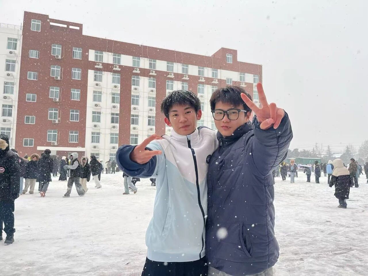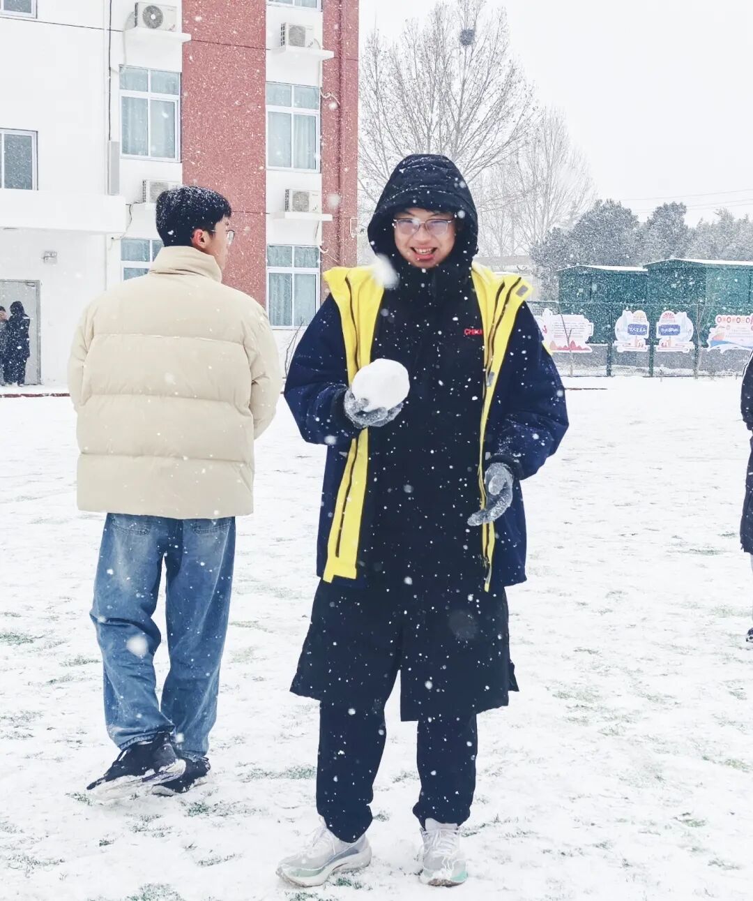 雪落校园,银装素裹笑欢颜