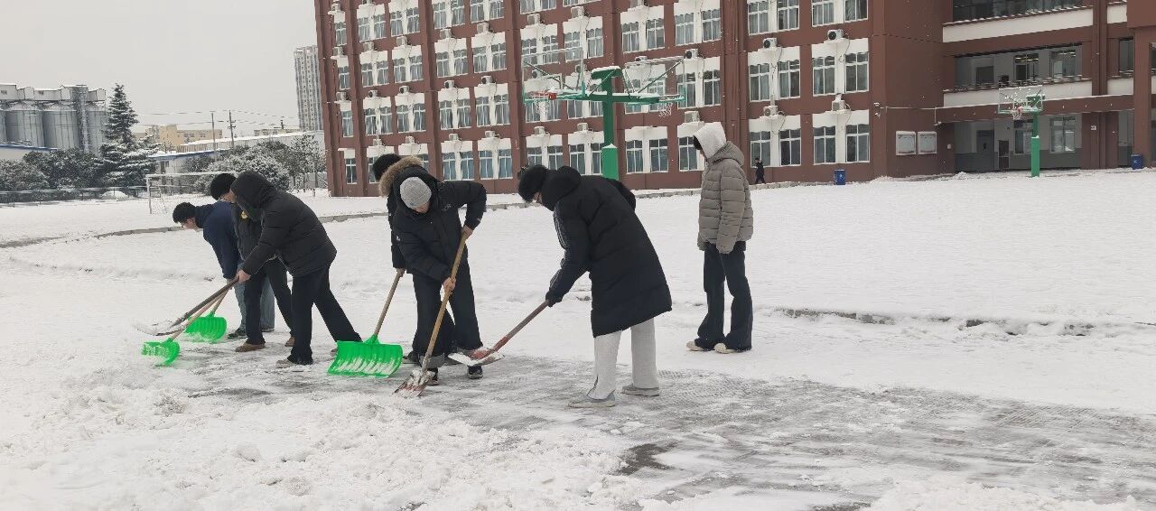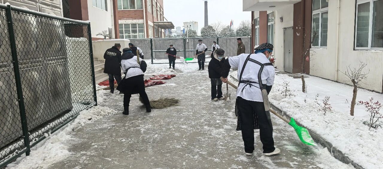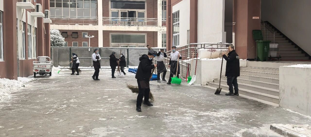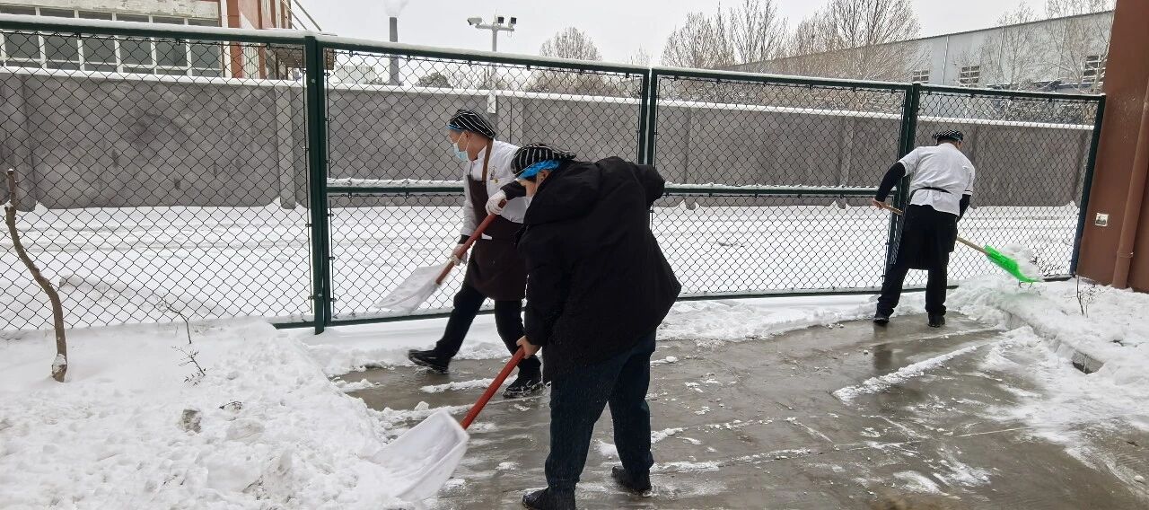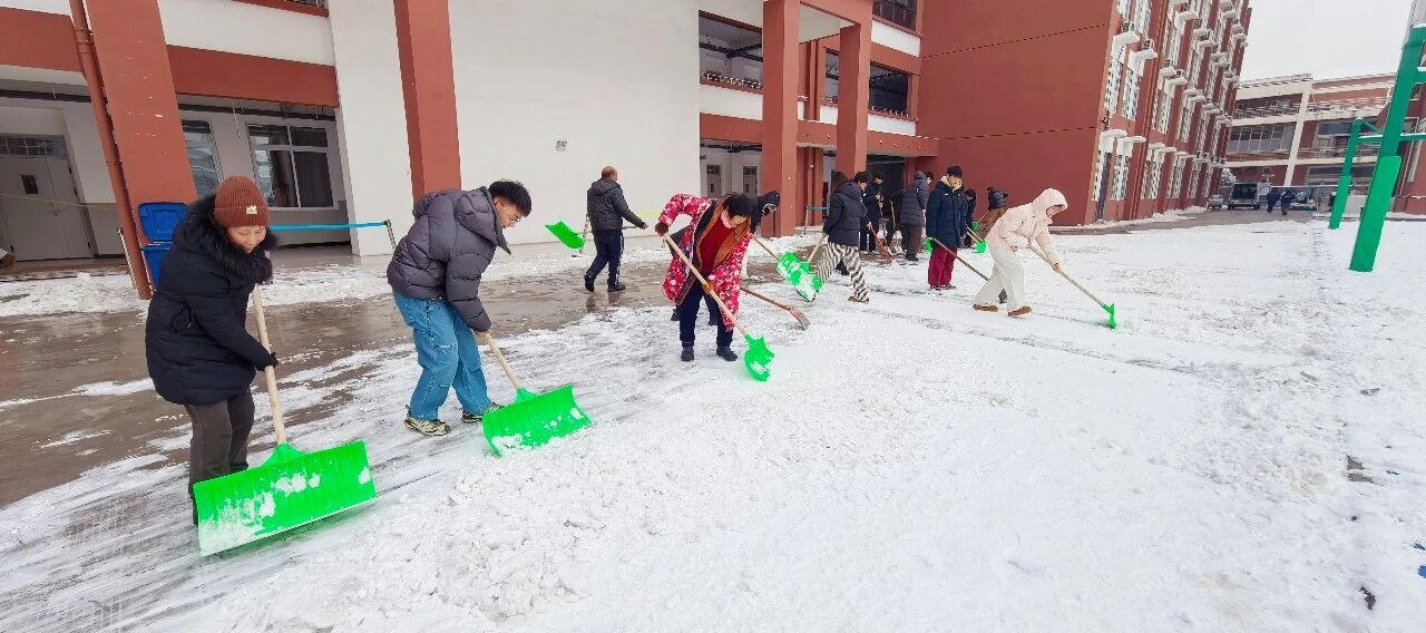 为保障师生出行安全,学校清晨便迅速组织工作人员开展铲雪除冰工作。大家齐心协力、干劲十足,挥舞着铁锹和扫帚清理校园主干道的积雪,以最快速度打通了一条条通畅安全的校园通道。