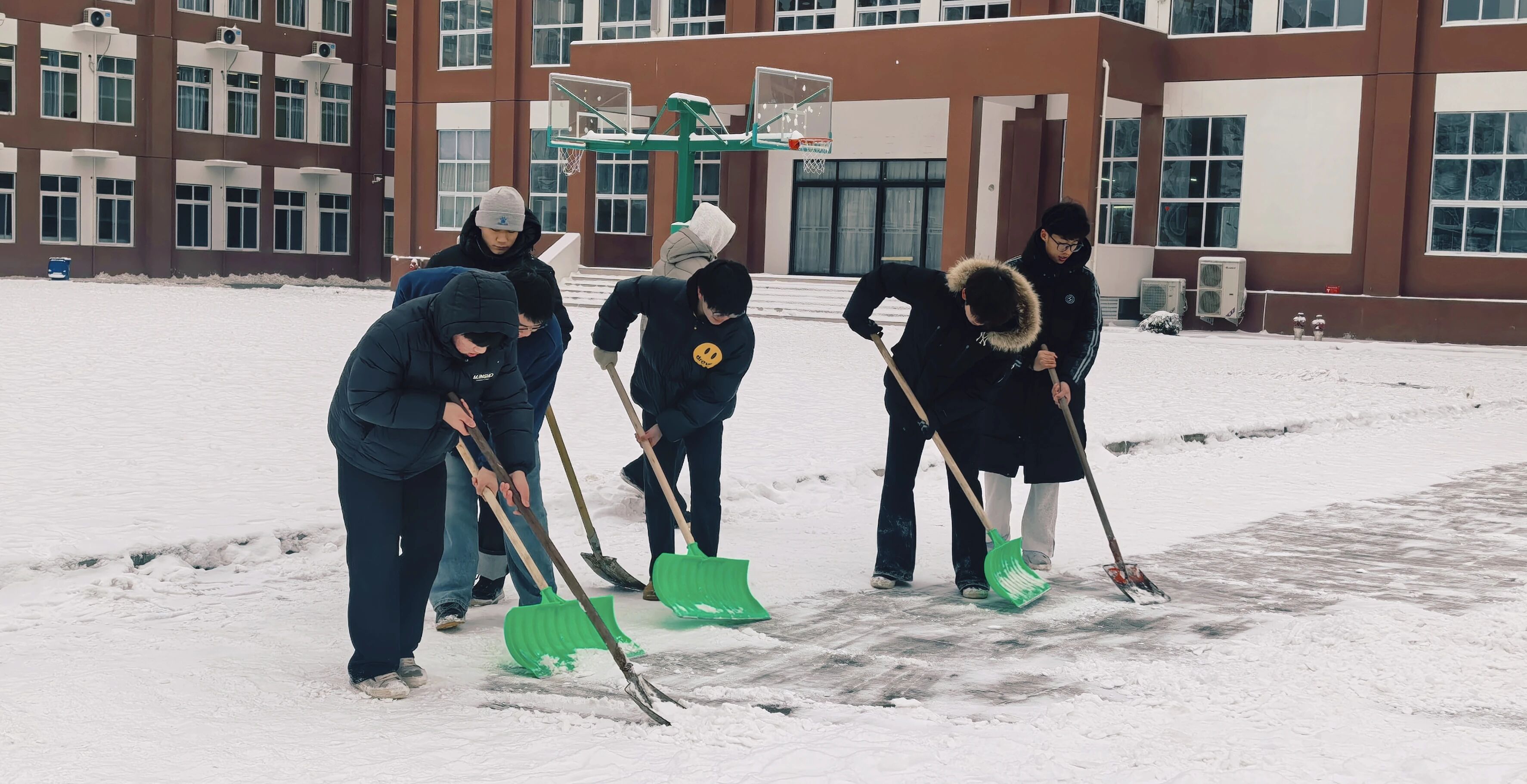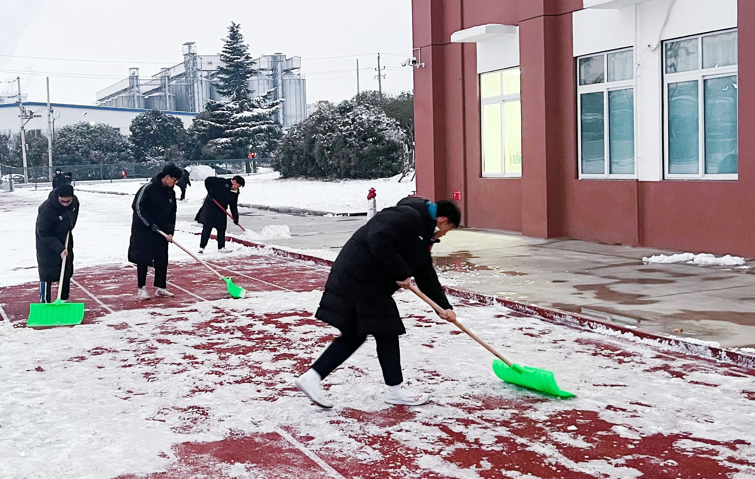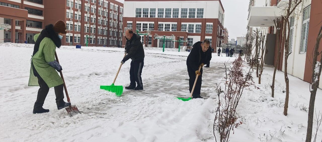 为保障师生出行安全,学校清晨便迅速组织工作人员开展铲雪除冰工作。大家齐心协力、干劲十足,挥舞着铁锹和扫帚清理校园主干道的积雪,以最快速度打通了一条条通畅安全的校园通道。