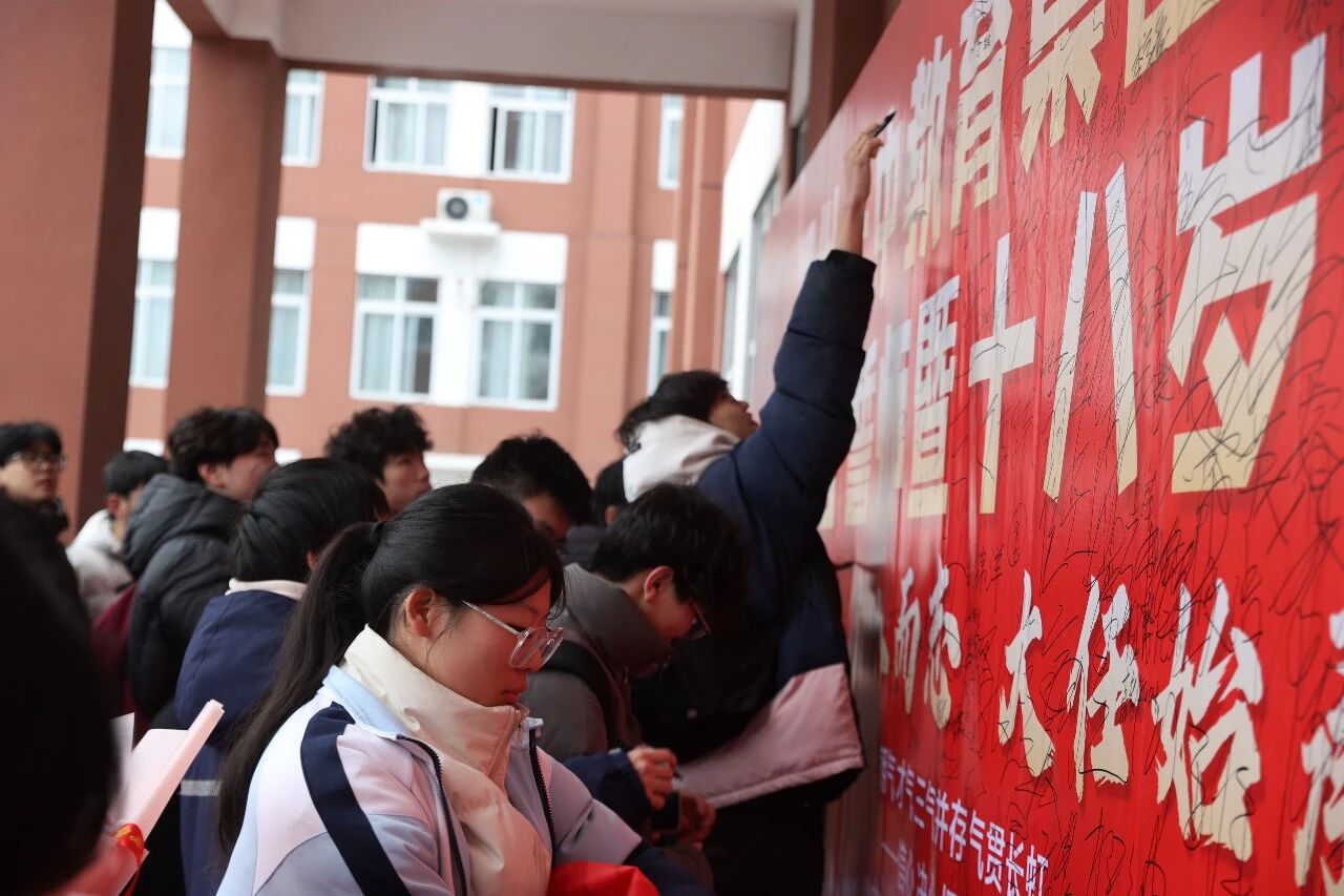 激昂的旋律响彻校园,各班学生高举班旗,迈着铿锵有力的步伐依次入场。老师们分列两侧,以最热烈的掌声迎接这群逐梦勇士。“我不懂什么年少轻狂,只知道胜者为王”“行则将至,做则必成”……一句句霸气十足、青春洋溢的班级誓言,尽显高三学子无畏拼搏的昂扬姿态,现场掌声雷动,激情飞扬。