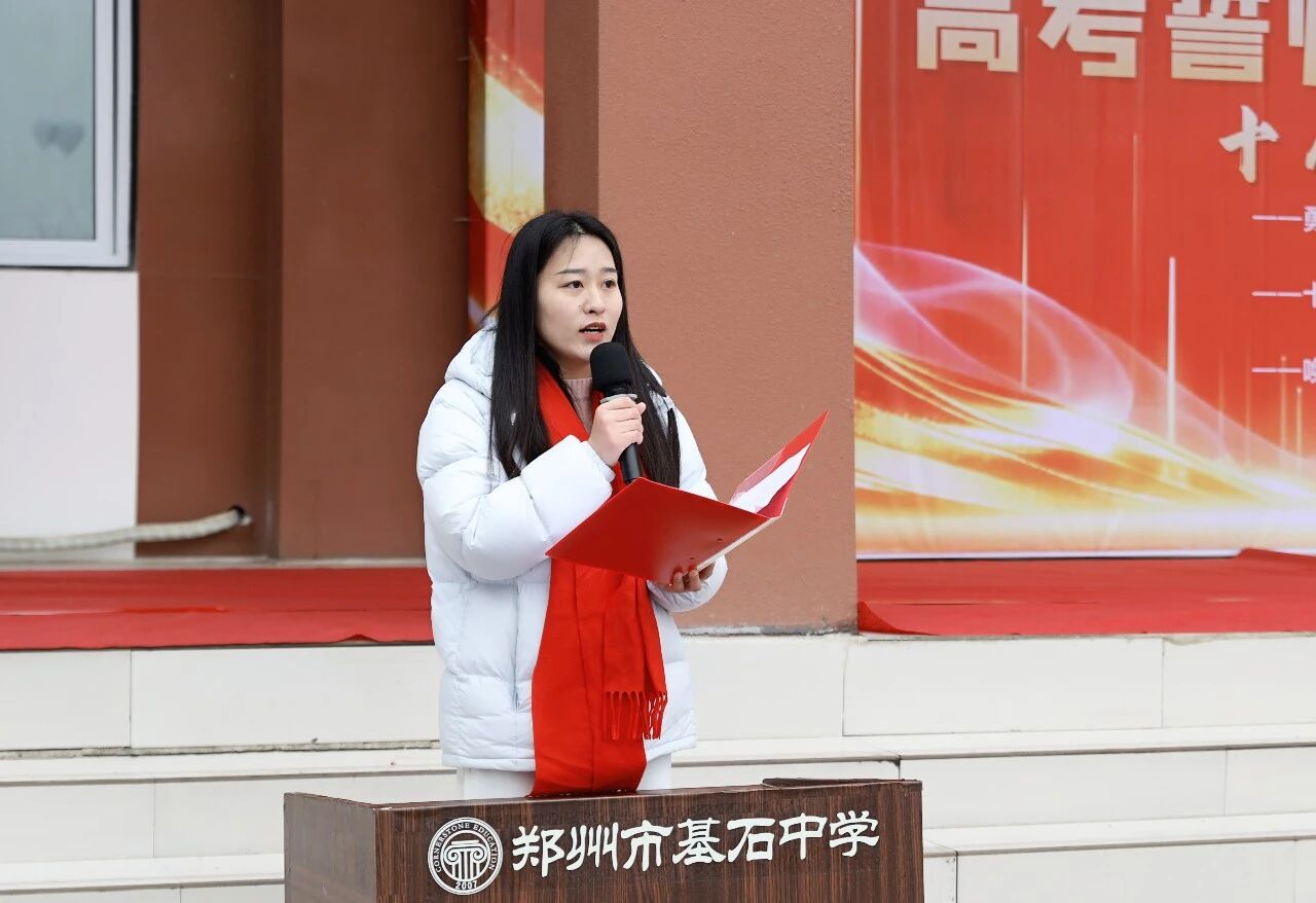 在全体师生的见证下,袁佳欣同学带领全体高三学子举起右拳,庄严宣誓:“十八而志,重任在肩;百日鏖战,决胜高考……”铿锵有力的誓言回荡在校园上空,彰显着基石学子决战高考的决心与信心,许下了不负青春、不负韶华的庄严承诺。