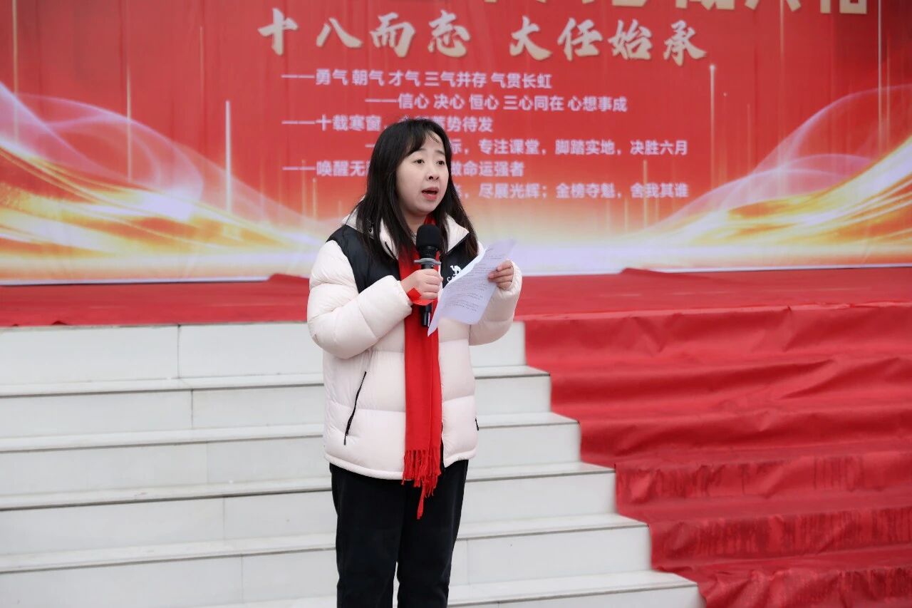 随后,全体高三教师在孙佳莉主任的引领下集体宣誓,承诺将精研考纲、科学导航,倾尽心血、保驾护航,甘为人梯培育栋梁,助力学子六月金榜题名。