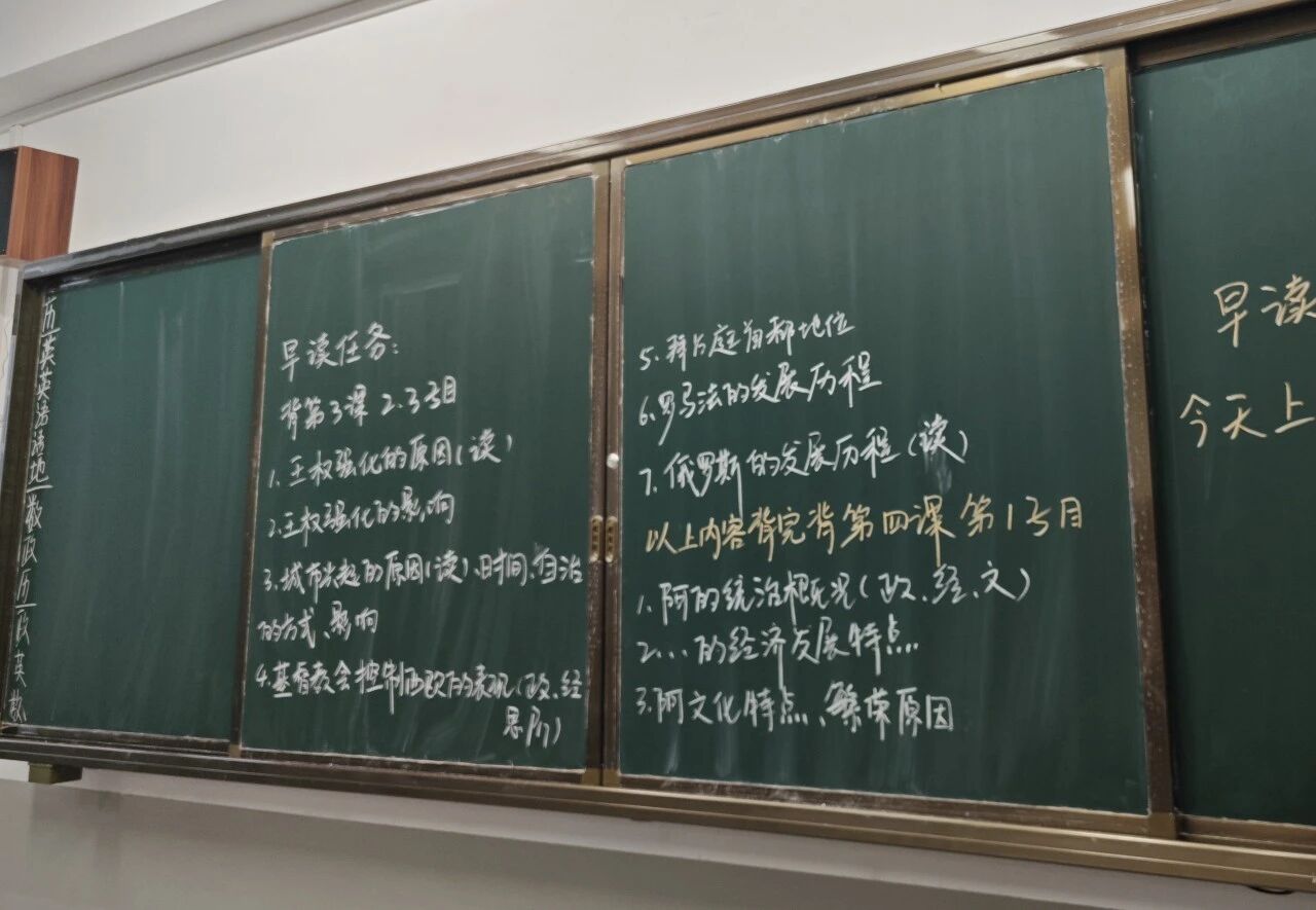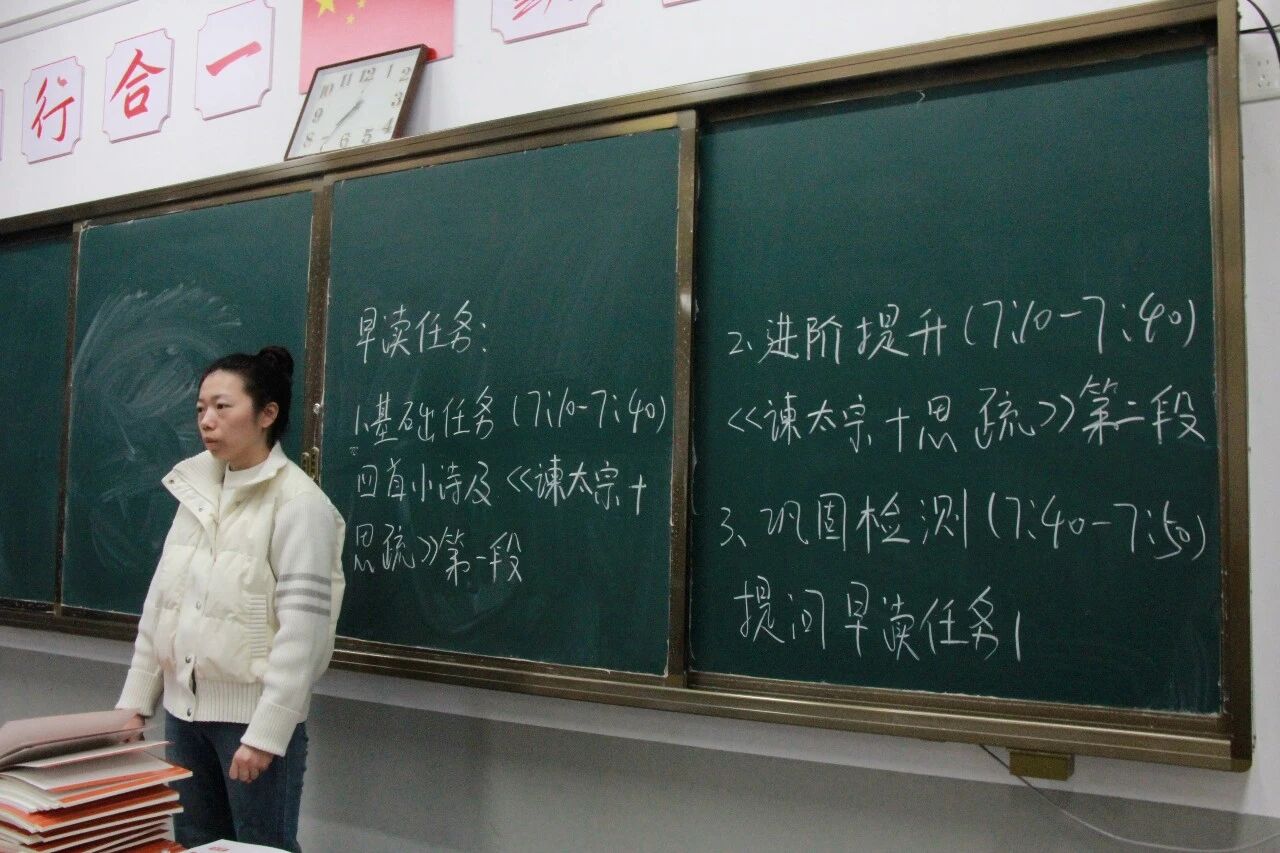 在早读任务布置上,老师们坚持以学情为核心,实行分层化、精准化布置。将任务清晰板书在黑板上,同时明确标注学习内容、具体要求、完成时限和基础目标,让同学们早读时目标明确、有的放矢。