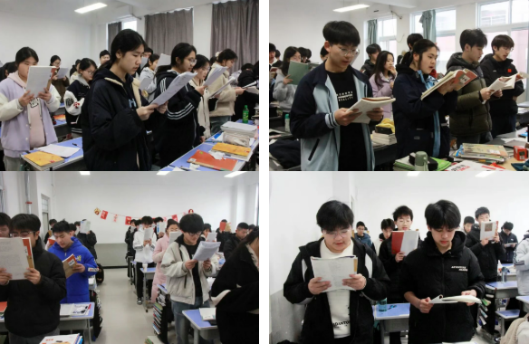 每天清晨,早读老师提前到班,结合学科特点与诵读内容,采用范读、领读、集体读、自由读等多样形式,调动同学们的诵读积极性,营造出浓厚的诵读氛围。同时,通过抽查背诵、现场默写等方式检验学习效果,确保早读学有所获、读有所得。