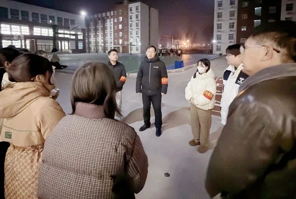 校领导带队值班全程值守,德育处、教务处联动检查,全天候覆盖校园学习、生活、作息各场景,确保校园安全管理无死角、教育教学无遗漏、服务保障无空档。