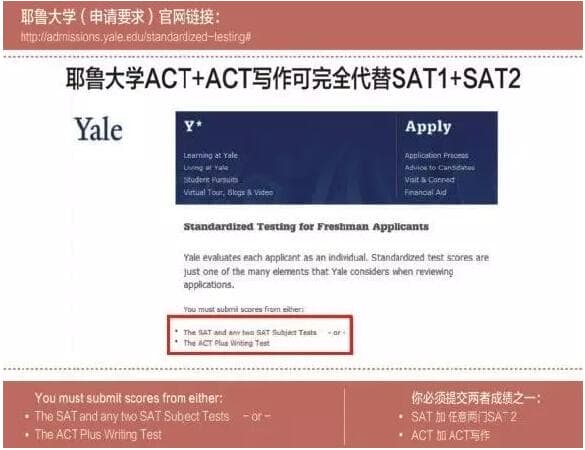 ACT与SAT均被称为“美国高考”。2014-2015年,有超过190万美国考生参加ACT考试,占美国应届高中毕业生的59%,这一数字远远超过SAT美国考生数量。除美国之外,还有39个国家百所大学将ACT考试作为录取标准之一。仅有托福或雅思语言成绩被美国百强大学录取的几率非常小。
